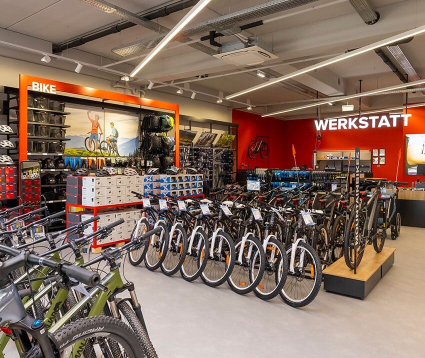 Unser neuer, moderner Store im Bike-Paradies Oberwart bietet ein großes Produktsortiment für sowohl Winter- als auch Sommersport. Besonders beeindrucken wird dich die Bike-Welt, wo dich auf 500m2 Top-Auswahl und beste Beratung für alles rund um Fahrräder und E-Bikes erwartet. Das breit aufgestellte und bestens geschulte Team freut sich auf dich!